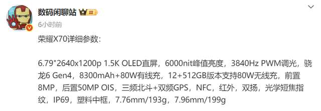 荣耀X70详细规格出炉: 外观、性能、细节, 基本没悬念了