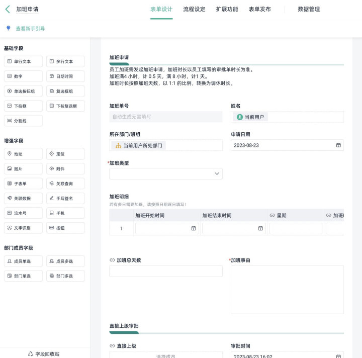 坑3:权限设错,员工看到了不该看的数据 一开始权限配置没分清,员工能看到其他人的记录。 赶紧分角色设置权限:字段级、流程级、表单级都设清楚,一劳永逸。 五、如果你也想搭,这些可以直接抄 从“请假流程”入手最容易跑通 这是所有人最有感知的模块,起步容易、效果明显。 先做最小闭环:员工发起 → 审批 → HR导出 别一开始就想连接钉钉、做工资发放,流程先跑起来最重要。 权限一定要分清角色,尤其HR vs 主管 vs 员工 避免信息泄露或误操作,一定设置“字段可见 + 操作限制”。 字段设计控制在10个以内,能选就别写,能选项就别让员工打字 员工体验好,流程才用得久。 每月固定时间复盘一次,逐步迭代升级 不要追求一开始做得完美,边用边调才是正解。 总结 你可能也在经历这些烦恼: 流程杂、人手少、数据乱、月底焦头烂额…… 这不是你的问题,也不是HR不够努力,而是你缺了一套“能跑起来”的系统。 我不是程序员,也不是产品经理,但我愿意尝试、愿意动手,花2个小时搭出来的这套人事考勤系统,已经在我们部门稳定运行了一段时间—— 流程跑得顺,数据看得清,人事不加班,老板也点赞。 这就是数字化的力量。 所以,如果你也正在琢磨: 怎么把HR流程标准化? 怎么不靠开发,快速做个能用的系统? 或者只是想试着把一个表单搭出来跑一跑…… 那就从最简单的“请假流程”开始试试吧,别等、别犹豫,动手就有答案。 最后,如果你想看看我这套系统的字段设计、流程图、权限配置表,我可以打包出来分享; 如果你已经开始搭建,遇到卡点,也欢迎来交流。 我们都不是程序员,但我们可以让流程自己跑起来。 |