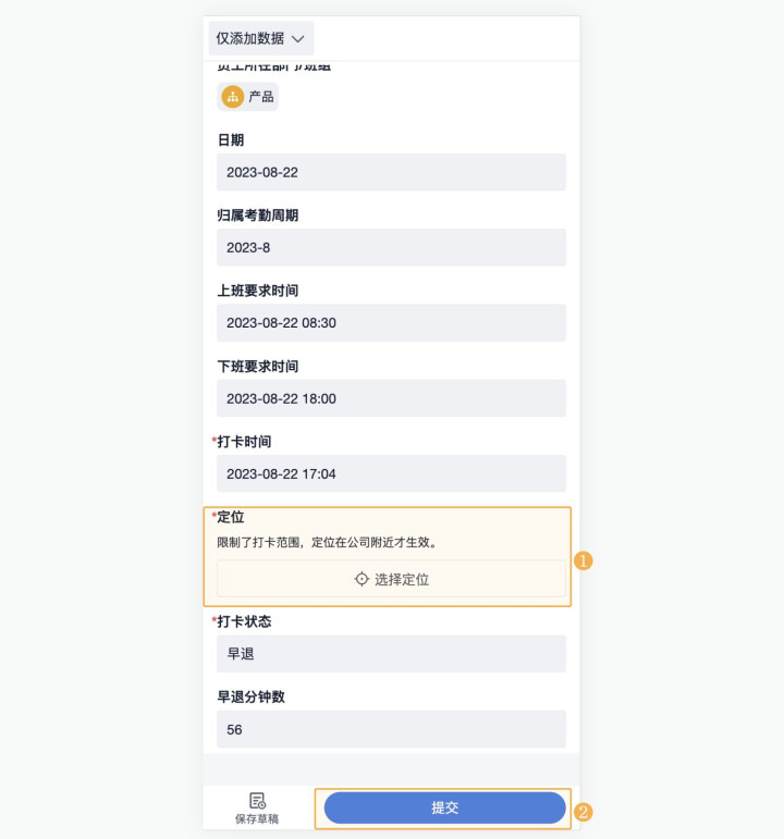 亮点:HR再也不用“发表格-等填表-自己抄一遍”。 2. 每日打卡(出勤记录) 我没有对接钉钉打卡系统,太复杂了,直接做了个“打卡表单”: 员工每天点击链接打卡(上班/下班) 系统记录时间+地点(手机定位) 超时打卡自动标记为迟到/早退 一天只能打两次卡(防止重复打)